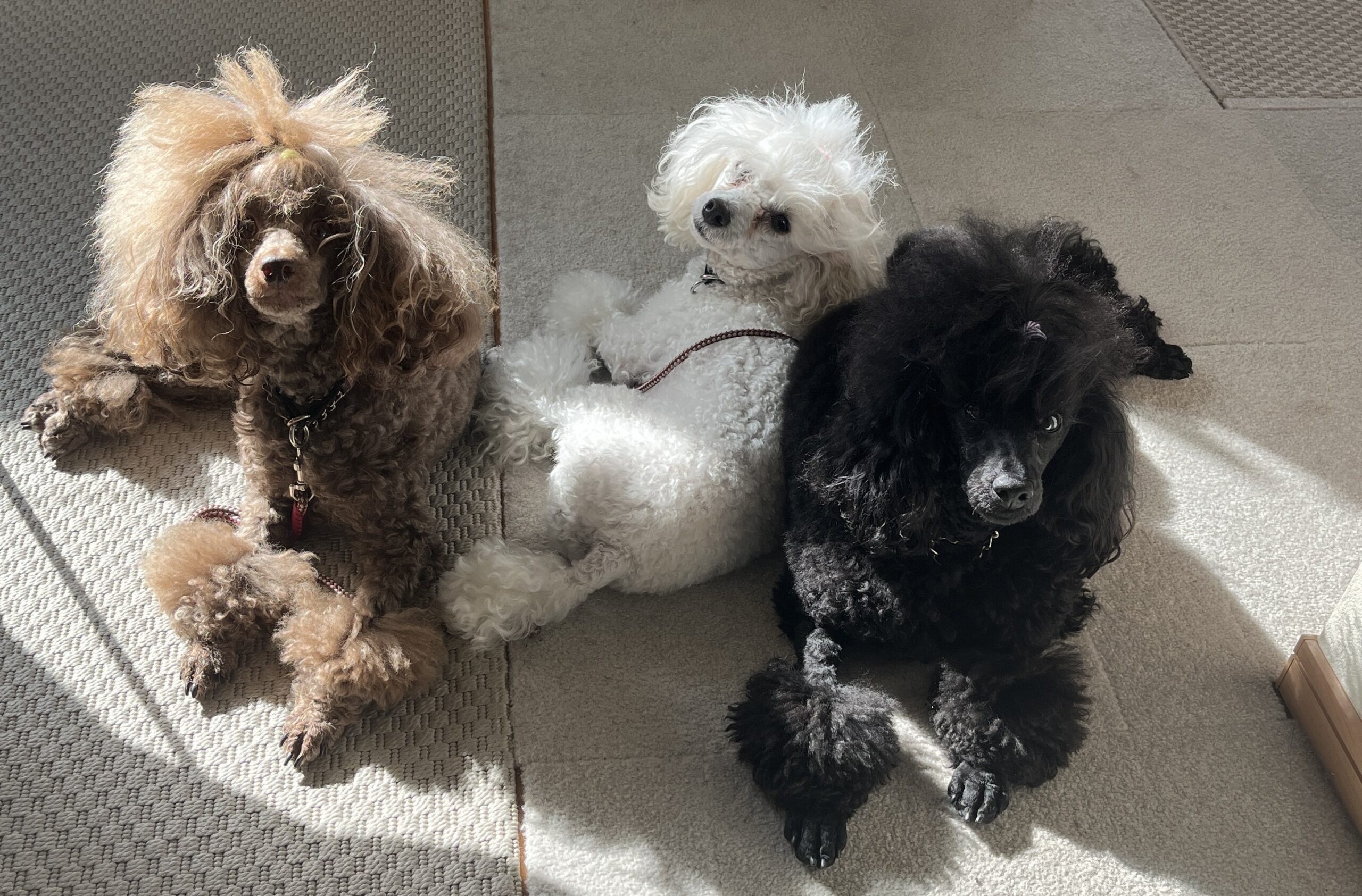 3頭のトイプードルとサイベリアンフォレストキャットと暮らしています。