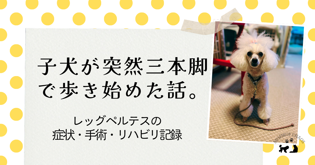 ただ幸い、その頃ちょうど避妊手術をする予定があり、かかりつけ病院に術前健康診断のため向かいました。そこで、今の主治医のセンセイにアリアの脚のぶらぶらを指摘され、レントゲンを撮り、「こんなの避妊手術とかしてる場合じゃないです、即刻脚の手術をします、とても痛いはずです!」と言っていただけて、ようやくレッグペルテスの存在を知ることになりました。。手術の予定を3日後に入れていただき、手術に備えるためいったん帰宅しました。